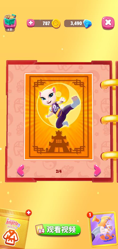 《我的安吉拉2》“武术”主题高级贴纸簿一共包括3页贴纸的收集,每完成其中一页所有贴纸的收集,就可以获得相应的奖励,包括钻石、公寓装扮以及发型等造型装扮。那么这些贴纸要如何获得呢?一是可以通过观看视频免费获得贴纸包,随机开出各种贴纸;而是消耗少量的钻石直接购买贴纸包,同样能够随机开出各种贴纸!