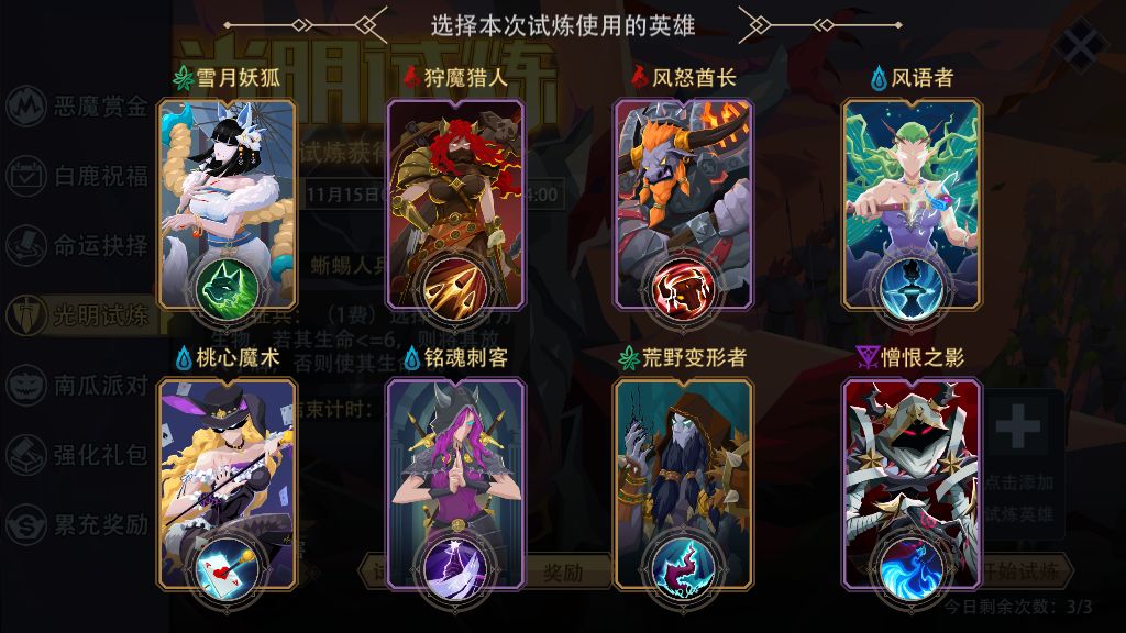 蘑菇补血流:(孢子+树妖+低语者+生命古树+治愈之风等)该常规打法一般可以拿满魔晶奖励,2000分伤害打满需要的条件较高。