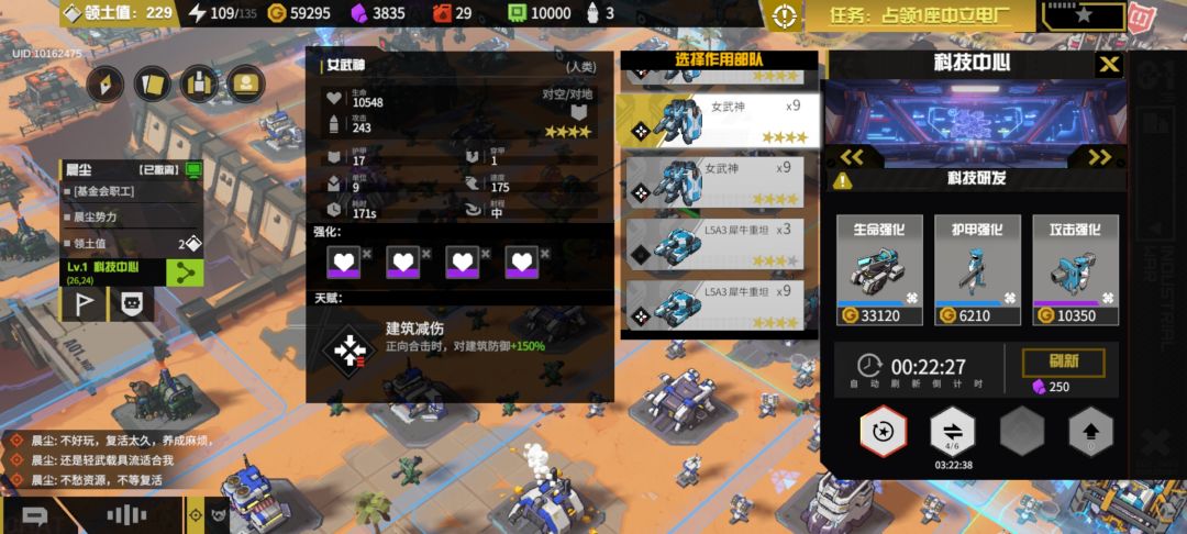 游思:超武,陆军,前排护甲,部队建筑防御,载具生命,载具攻击,载具护甲,载具穿甲此类加成拉满,剩余电力人口等。