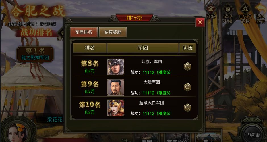 长期蝉联战役冠军的龍之戰神军团依旧稳定发挥,在本次合肥之战的首日即达到了巅峰!