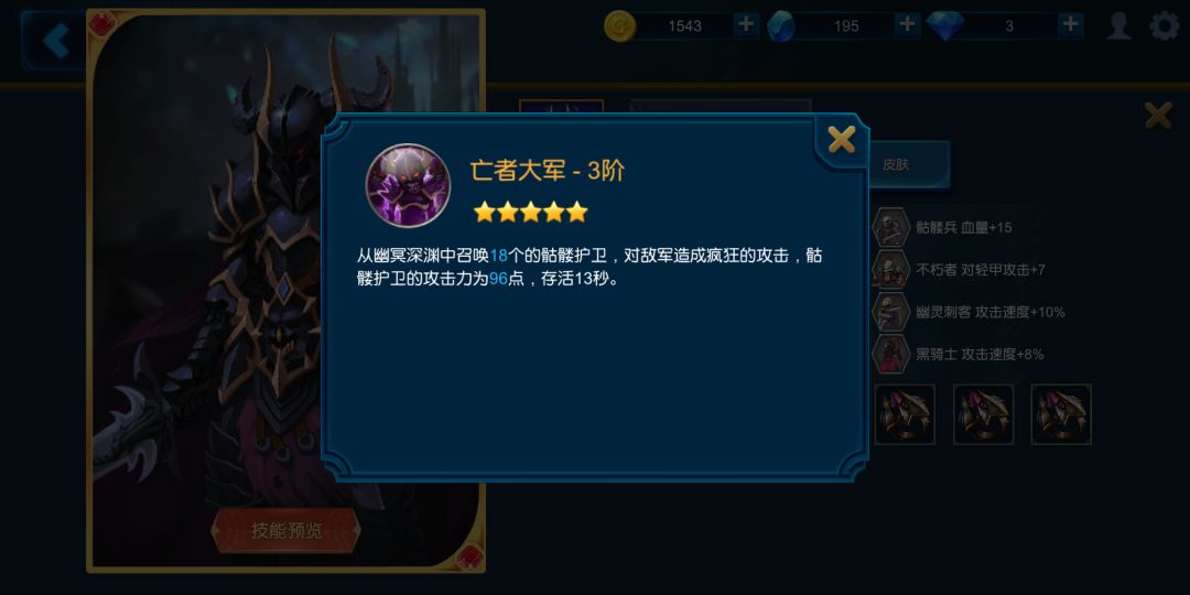 加成:骷髅兵血量+15,平平凡凡的加成,可以使剑圣等攻击低于135的兵多砍一刀,配合复活率能起到不错的效果。