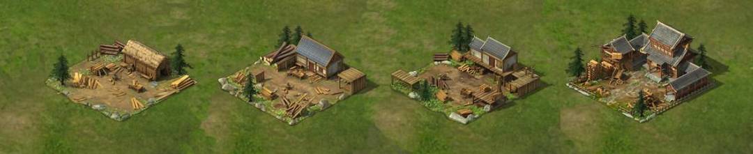 伐木场中出产木材。建设、研究、征兵需要消耗木材。升级伐木场可提高木材产量、容量。
