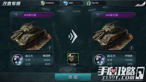 《闪电突袭》中坦克品质由低到高分为绿、蓝、紫、橙四种。玩家合成的初始坦克都是当前品质的一星坦克。比如,“虎式”坦克的品质是蓝色,玩家合成得到的虎式坦克即为蓝色1星坦克。坦克改造后会提高坦克星级。坦克每档品质满星为5星,5星满后继续升星则会提高坦克品质。比如蓝色5星的“虎式”坦克继续改造,则会升级成为紫色1星坦克。以此类推,直到升至橙色满星坦克。闪电突袭坦克改造攻略