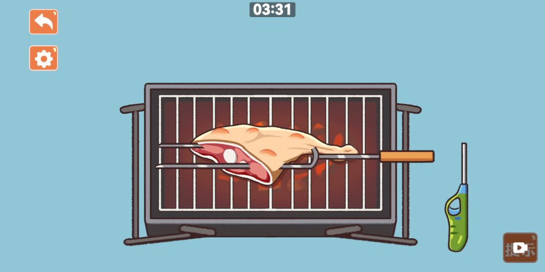 这个烤肉,先把四个罐子在火上烤一遍,就和拔罐一样,放肉上,然后再拿下来。