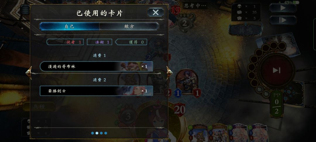 这个可以看到双方使用过哪些卡,用过多少张,由于影之诗获取资源的方式很稳定,因此很少出现有资源以外的卡,靠这个信息可以预估对方还剩几张key卡并预判之后可能的操作