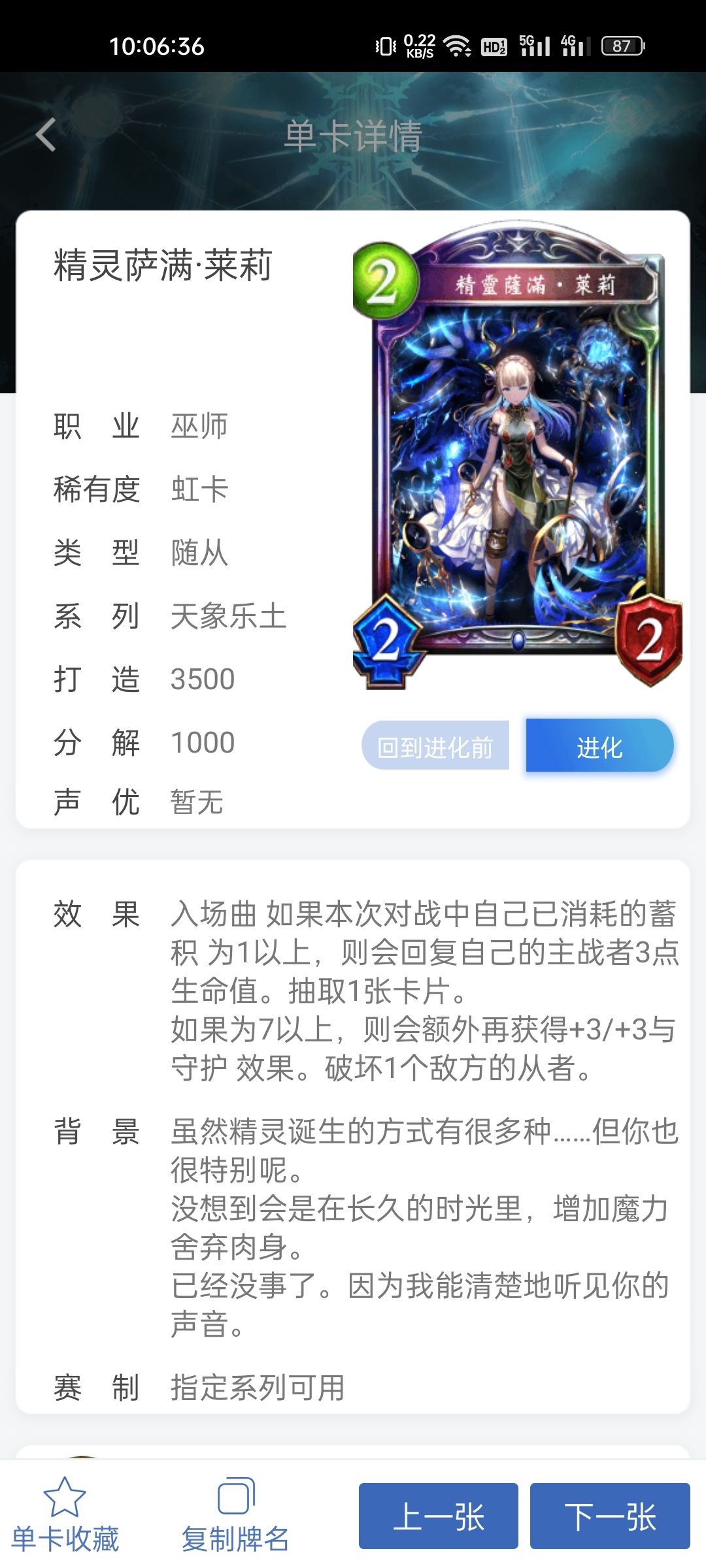 下面举一个例子,莱利入场时吃过1土或以上,触发一效果奶3抽一;吃过7土或以上,额外获得+3+3守护和破坏一个随从的效果