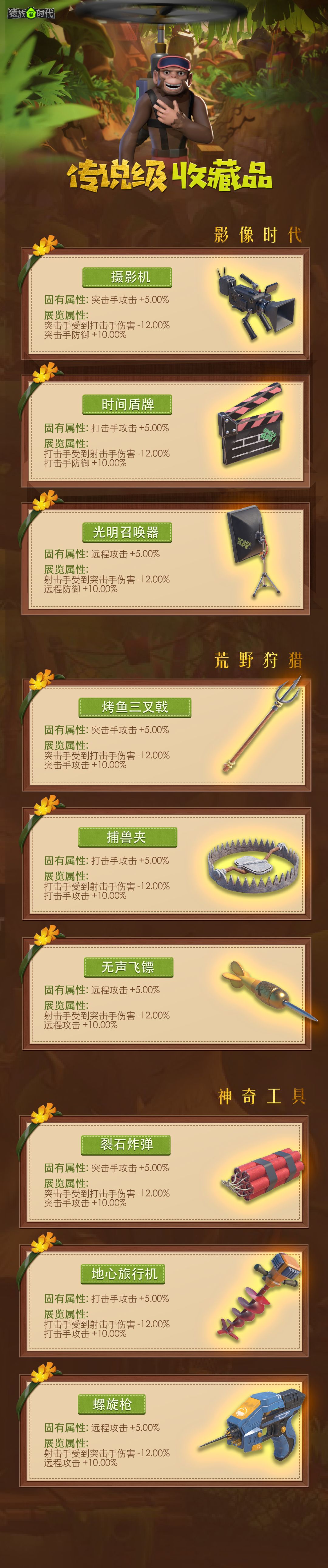 新增[影像时代]、[荒野狩猎]、[神奇工具]3个系列,共计9个传说级藏品