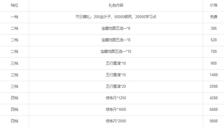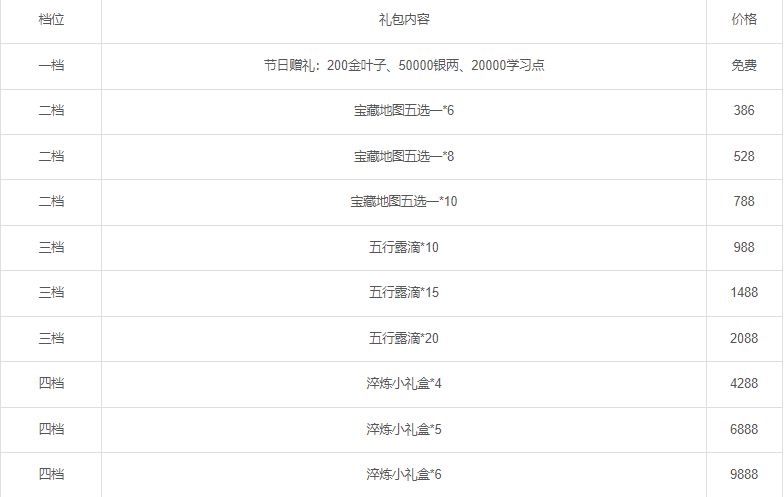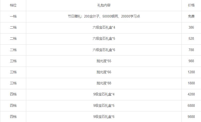 活动一:活动期间将限时上架节日礼包,礼包内容如下