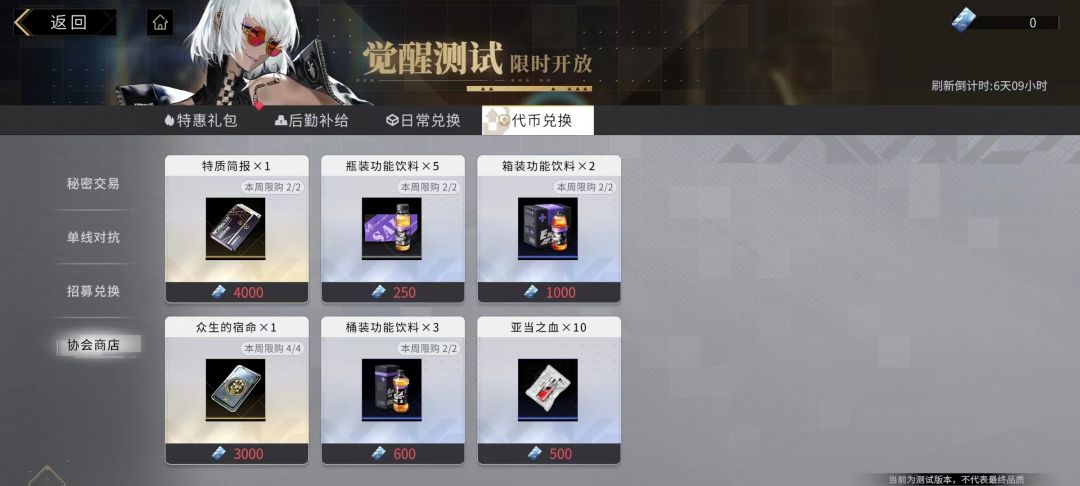 由于协会商店内的道具均比较实用,但每周获得的协会贡献量非常有限,难免需要在这些道具上做出一些取舍,由于功能饮料以及亚当之血均可在前期的新手任务中获取,而特质简报以及众生的宿命获得方式相对有限,也更加稀有一些,如果前期角色养成已经足够挑战各类副本的话,则可以优先兑换特质简报以及众生的宿命。