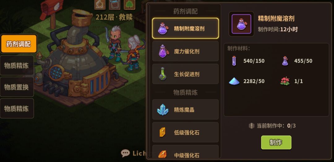 炼金炉一共有三级,每升一级可以增加一个制作槽位和部分道具制作权限。2级时即可解锁全部药剂调配的制作。