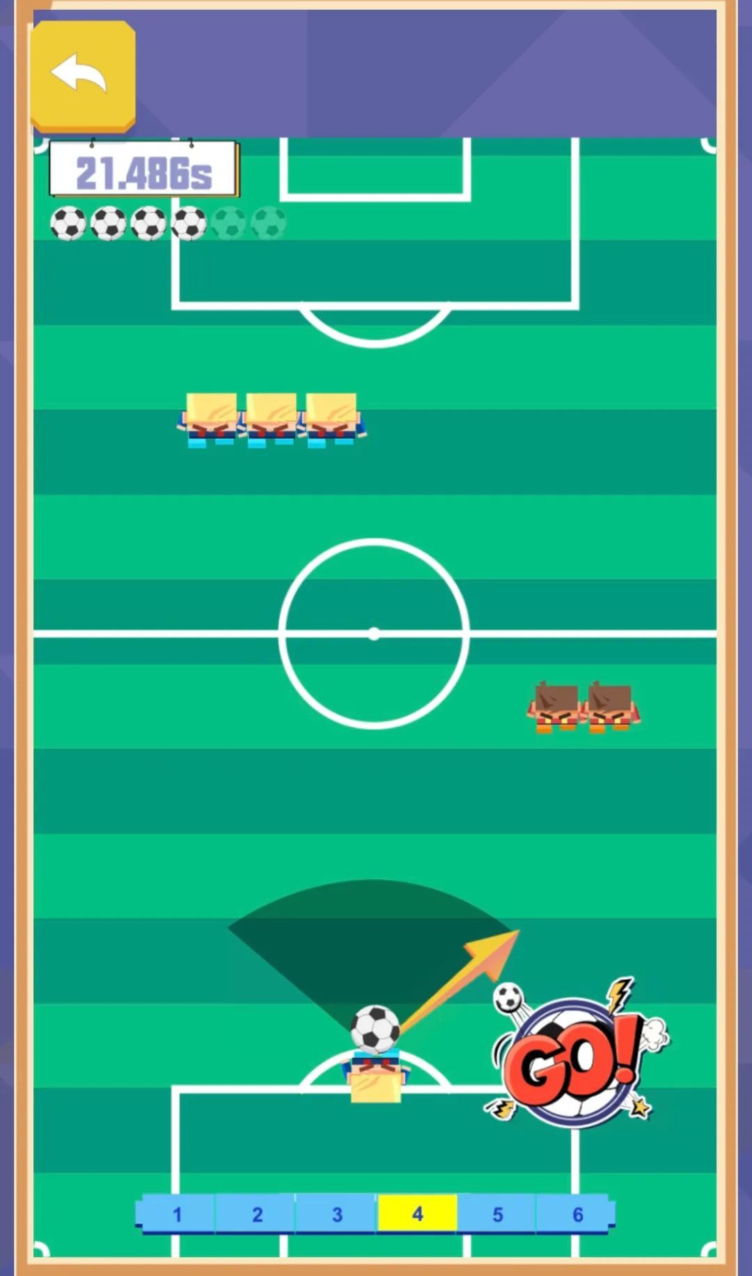 1. 各位弟子点击“GO”按钮,可将足球按指针方向踢出。弟子们需要将球传给黄色的己方球员,才可进入下一关。