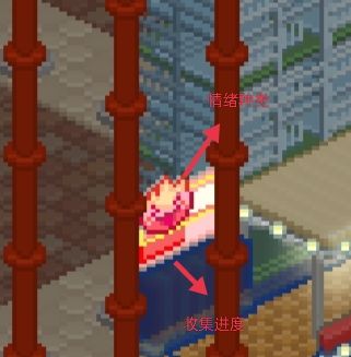 首先我们要知道本游戏里最稀缺的资源,情绪点数。在每个游乐设施的入口处都有一个情绪箱,上面的图案代表该设施可以收集的情绪种类,下面的进度条则是收集进度,进度满了就能获得一个点数