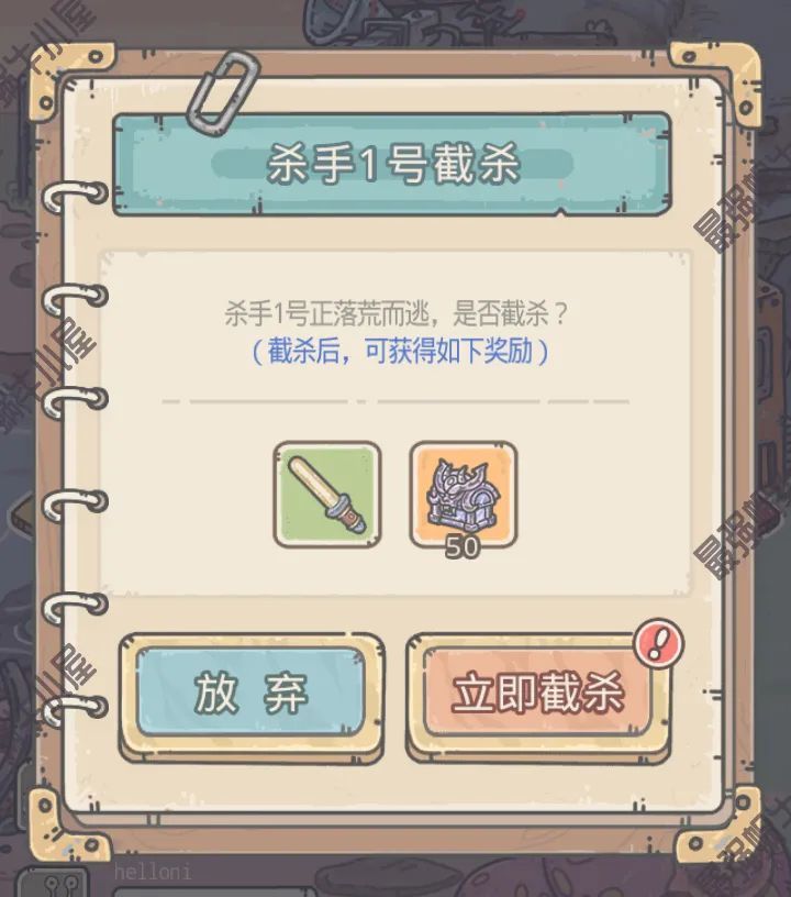这个杀手1号截杀之后会给一个原力剑(+1时算是t0装备),并且他会成为原力之神,之后神降有几率遇见,他会给器官宝箱,详细可看这里。