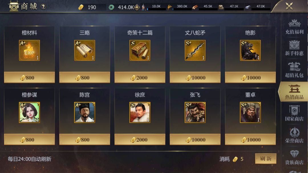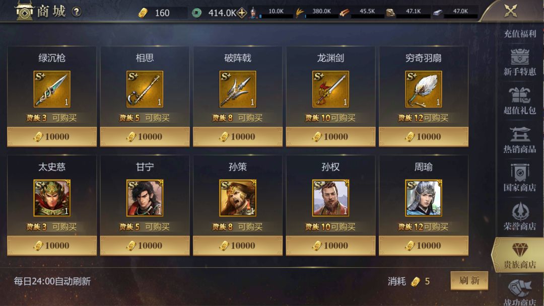 五、商城-贵族商店,这里有武将的专属装备,专属装备有30%的属性加成。配备上专属还是非常厉害的!