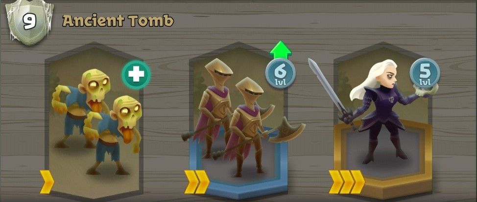(右)聖武士:光環內部隊解毒並緩慢回血,對抗瘟醫的救星,但是光環效益藥最大化就很難放擲斧兵之外的遠攻,而且聖武士以單體英雄來說血實在很少,想保護好她肉盾一定要夠多夠快,後期常看見搭配死靈騎士玩突臉流
