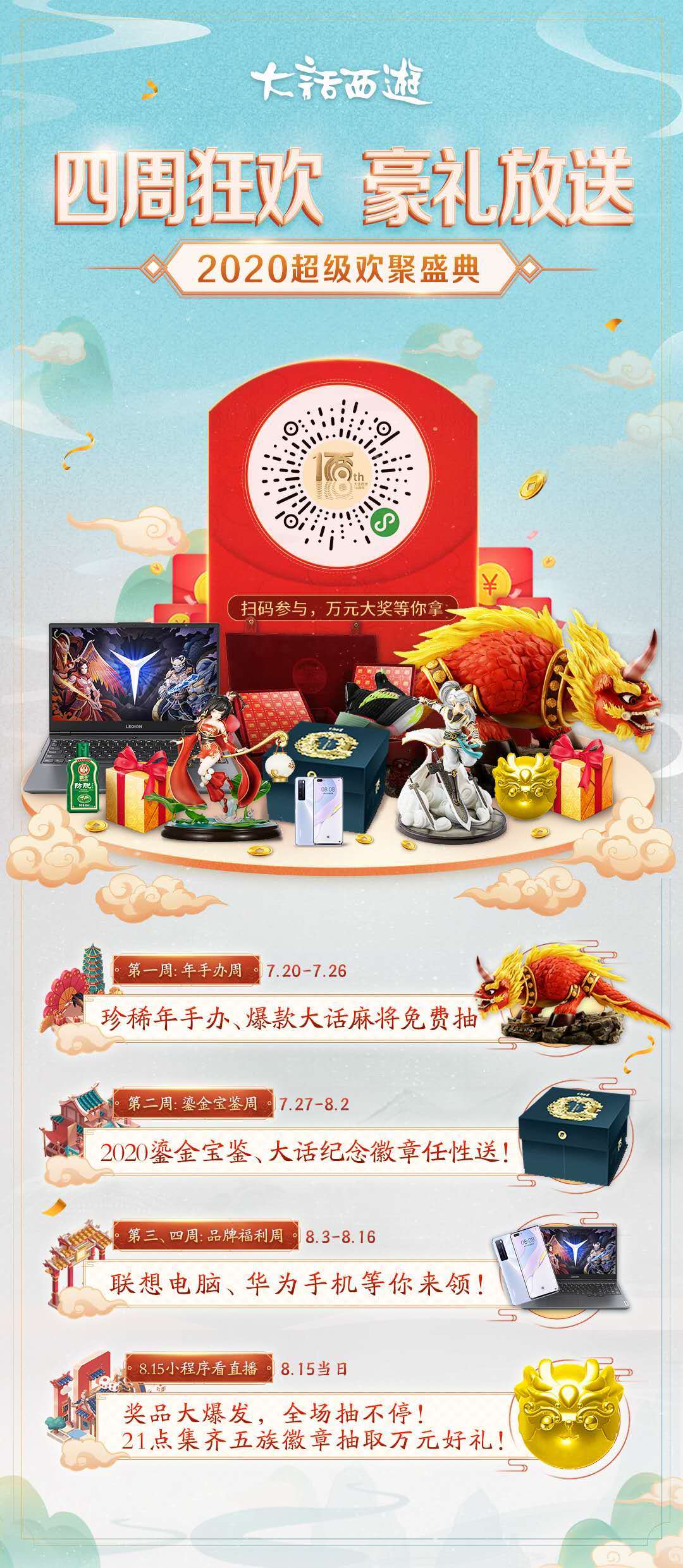 快来参与丰富的周年庆典活动,享受超值福利,赢取丰富奖品,和兄弟们一起为大话庆生吧!