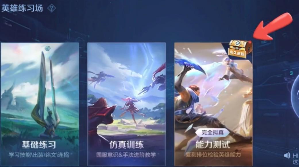 第三个选项能力测试这里,很明显有一个红点,这就是我们获得史诗皮肤宝箱的入口。