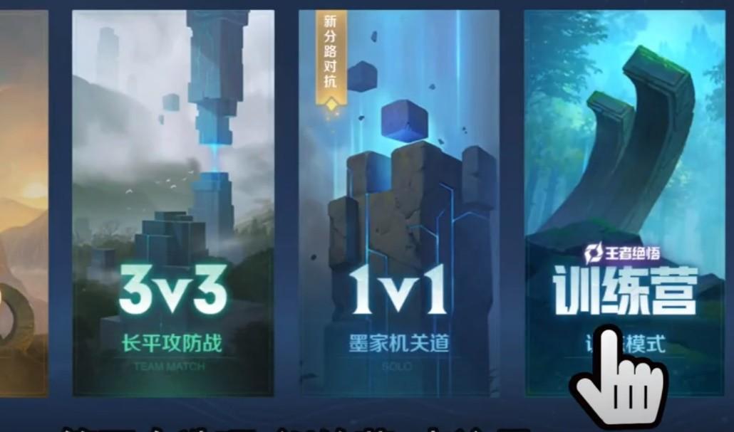然后再点击第四个“训练营”按钮,大家平时练习英雄,测试皮肤手感就是在这个地方。