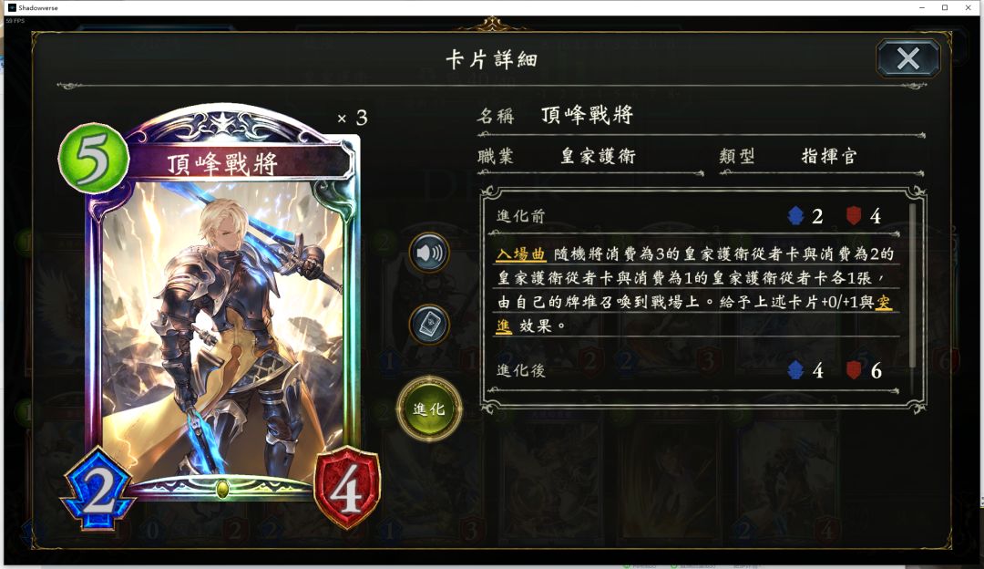 顶峰战将入场曲拉出的重要吃进化点的随从,可以再检索一个卡组中的2费以下指挥官随从,在没有顶峰战将的时候也是一个优质的吃进化点的随从。