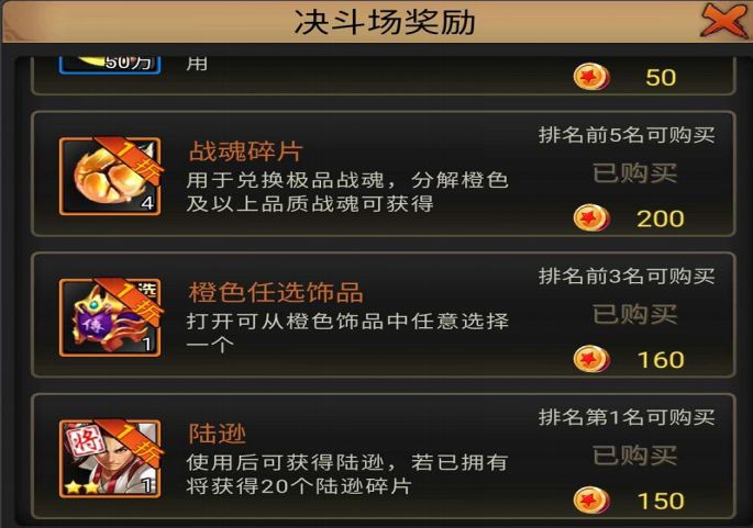①. 每天习惯性逛逛商店,兑换养成材料、指定的冠将碎片,有时战役商店还能更新珍惜的饰品碎片