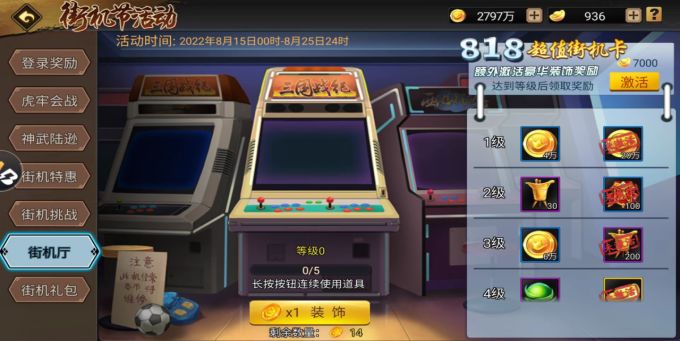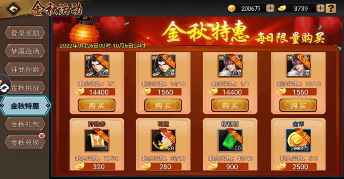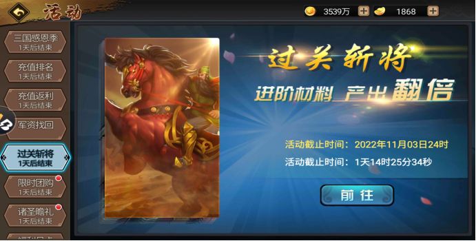 ④.大型活动现场,难得的装饰类活动,必须尽力图之,回报甚丰;新武将发售期间能免费收获数十枚碎片,特别是节日兑换环节,不止有新武将碎片,一些热门武将碎片同样可以兑换,加快我们收集武将的速率。