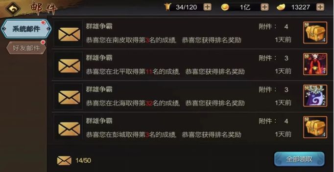 加入一个团结有力的军团,游戏初期共同提高,特别是游戏中后期各种资源回报率更大。在游戏前期,一些难度较大的副本,高战力军团成员可以协助完美通关;竞技场排名奖励为了能尽可能多的领取,可以寻求排名靠前的游戏好友或者军团成员卸下装备降战力来助你登顶。决斗场、群雄争霸更不会互相伤害,只要自己军团足够团结和强大,其它军团玩家也会掂量着来,不会捡软柿子捏,可确保资源的稳定产出。而且群雄争霸中,军团高战力玩家占据太守时,军资宝箱送的资源日积月累后也会很可观。