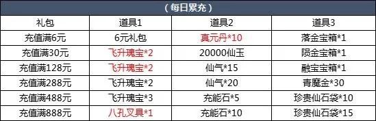 【活动简介】活动期间,每日累计充值达到指定金额即可领取相应好礼。
