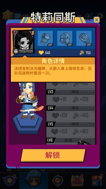 13号:特莉同斯 冰冻者,通过第三关付费解锁,初始S级英雄,连续发射冰冻榴弹,从敌人身上吸取生命,在队伍战败时复活一次,可以为队友提供冰霜护盾,抵挡伤害并在盾破后造成范围减速,并且第三个装备满级后,可以将持续时间从4秒提升到9秒,以及提高60%护盾值,一个非常强力的辅助英雄,挂机选择之一。