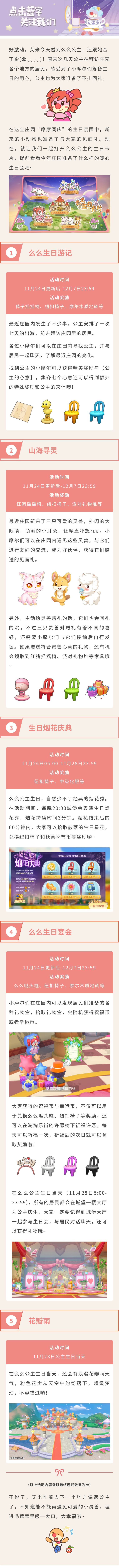 好激动,今天碰到么么公主,还跟她合了影(✿◡‿◡)!原来这几天公主在拜访庄园各个地方的居民,感受到了小摩尔们筹备生日的用心,公主也为大家准备了不少回礼。在这全庄园“摩摩同庆”的生日氛围中,新来的小动物也准备了与大家的见面礼。现在,就让我们一起打开么么公主的生日卡片,提前看看今年庄园准备了什么样的暖心生日会吧~