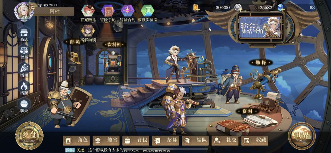 商店记得买礼物升默契和建材升船舱,对抗,公会委托,捐助,赛事等活动能做就尽量做,拿满积分然后去换自己急需的物资。