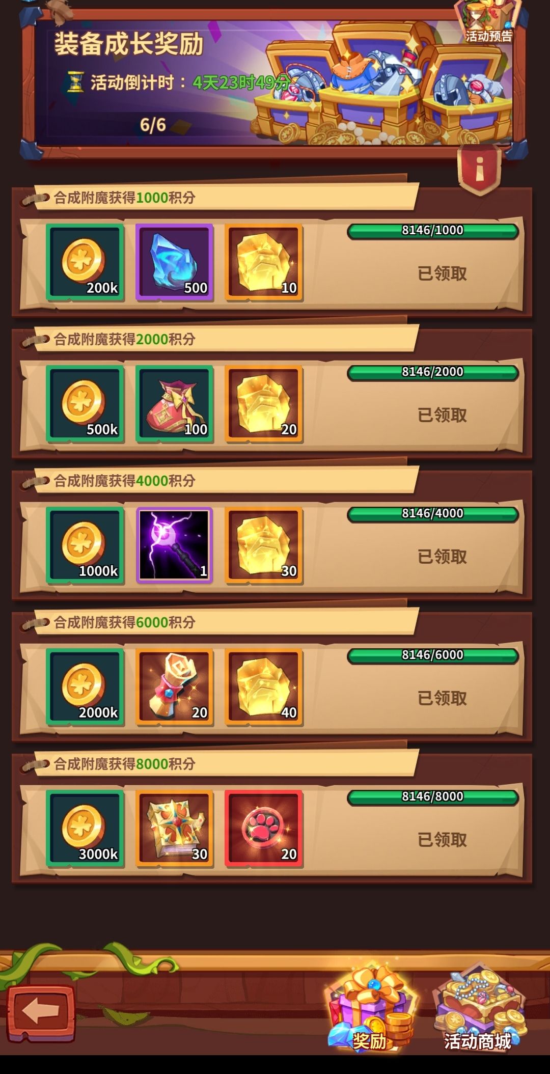 我这期活动一分钱也没充,但是我现在已经六轮了,从现在开始就是攒装备,攒附魔石为下期做准备啦!
