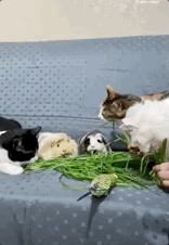 养了两只豚鼠后,家里的猫和鹦鹉也开始喜欢吃草了@不想加班