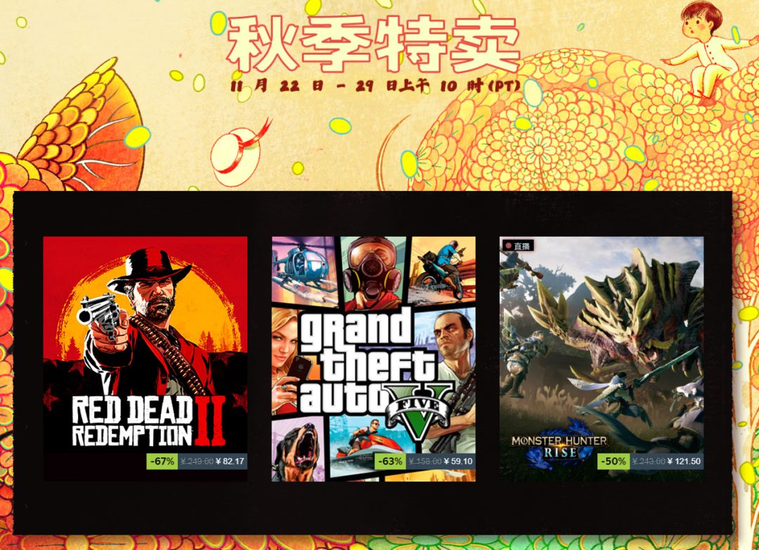 Steam 2022 秋季特卖现已经开启,将于 11 月 30 日 2 点左右结束,《荒野大镖客:救赎 2》等多款大作价格迎来新史低。