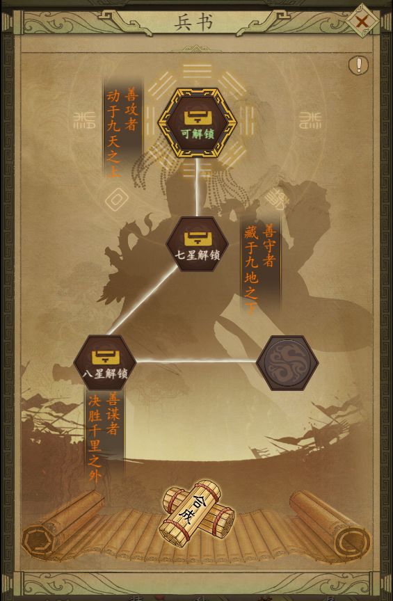 “谋攻”善守者,藏于九地之下,本系兵书可强化武将的主动技能