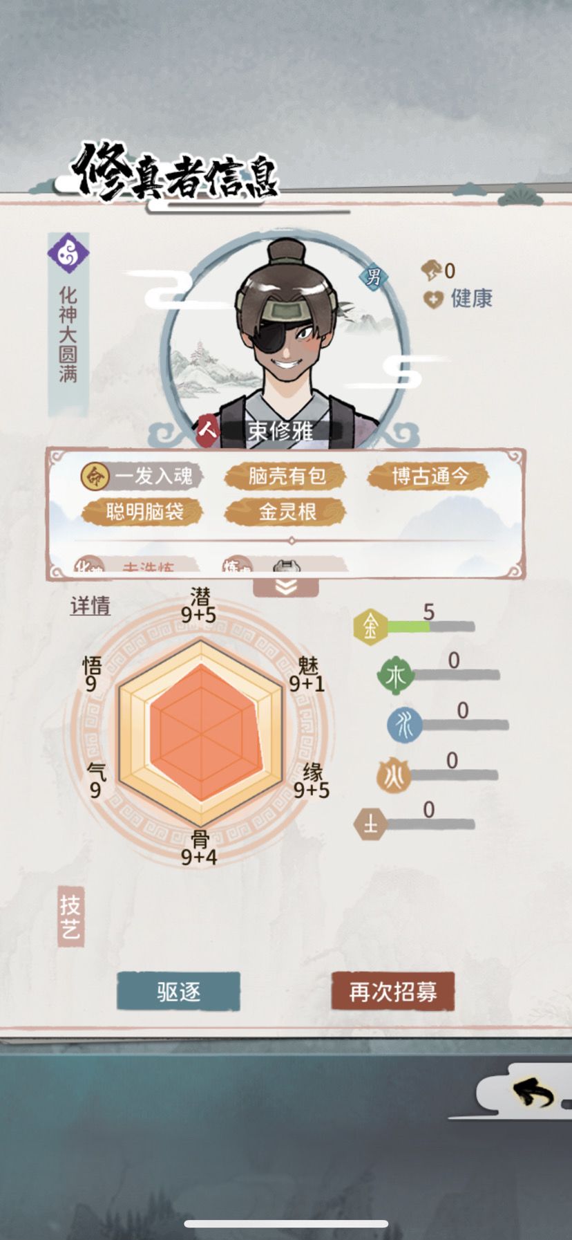 广纳英才战斗弟子给大家试试水,这里发两个,还有一个小号也差不多,六围偏右下