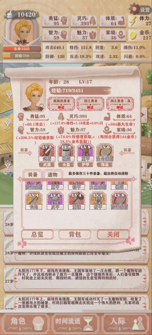 9万光环开局属性略低,神父那回合灵巧大概低40点左右,这局为了应付神父多下了几次本。不然会被神父打爆,要刷隔山打牛和顺劈。如果30万光环过来就可以无脑一点了。