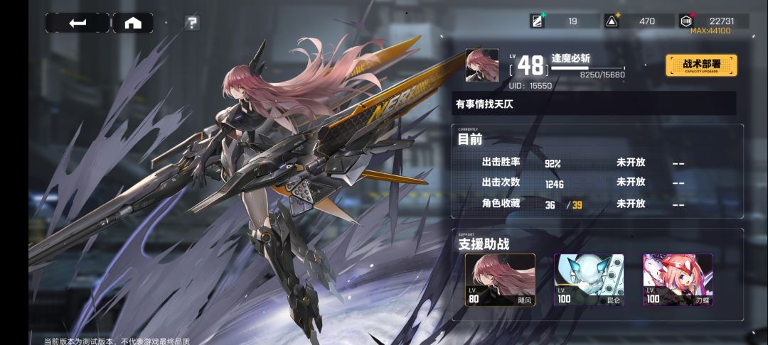 关卡隐藏掉落问题,比如材料日常3在掉落列表中不会写出掉落莹晶模组,但是在多次测量掉落物之后,是有一定概率爆出它,再比如困难副本的金色芯片掉落,在副本掉落物中没有明确写出会掉落金色芯片,这个希望能得到优化吧。战术系统,这个系统可以说是通关的利器,但是由于只在引导中提到过一次,并且并未有教程指导如何使用,在局内战斗繁杂的画面中,战术的图标很难找到,甚至被忽视,我主线全部打完之后才知道还有战术这个系统,所以这个系统做的有些透明,但它并不是完全无用,而且作用相当大,创意很好,需要改动的就是触发的按键过于透明很难被发现,希望在考虑美观的基础上对这个按键进行改动。战术的话我这有一个想法,是破盾的战术,因为后期的物理盾过于烦人,一个技能是指定目标破除五层护盾,一个技能是指定目标回合延后20%,一个技能是为己方套上一层/回合减伤盾,偏防御类的吧,还可以出一些偏向异常状态的。异常状态,在本次测试中,还有很多队伍没有被开发出来,我认为其中比较有潜力的是异常状态队,而这个异常状态的人物,希望能推出几个,例如灼烧,冰冻,混乱或者已经有的眩晕,但是这些要考虑boss不受异常状态,这点主要是为了一些上文提到过的芯片提出的,暂时没什么想法。能量c以及tank,算是想丰富一下阵容吧,可能有一些现在在三星或者四星角色上有类似,能量c的重要性就不进行赘述了,tank我认为是需要开发出来的玩法,现在比较有雏形的是阿尔卑斯,还有几个四星角色,对于现在清一色的有盾昆仑,没盾上c狂日关卡,更想让一些其他的加入这个体系,承伤/嘲讽/反击/均伤,一些在关卡boss上有雏形,tank的加入可能会导致战斗很拖沓,或是超出回合限制,这也是有待考虑。异常状态命中/抵抗,这一项是被很多玩家忽略掉的问题,这部分相关数据我也没有测试,但是很多时间都有它的出现,状态抵抗,坚韧命中等等,想要提高这方面的重要性可能就需要一些具体的数值体现,比如多少命中可以100%控制,抵抗可以抵抗多少命中等等。经验方面,经过我的一些测试得出的1至80级经验需求,还有一些碎小的数据,得出81至100级所需的经验和1至80级差不多,都在二百万以上,前者甚至更多,不难看出升级经验膨胀的速度很快,总体上升趋势改变的不是很大,但是它一直在递增,导致这个总和越来越大,目前的观点来说,升级在中期偏后是最不划算的养成方式,几万点经验提升一点属性,这个情况在80级之后最为明显,升一级需要十几万二十几万的经验,给的属性和之前没有区别,有一种想法是,80级以后的级别提升,每级提升适当增加一点,因为80级之后的提升,每五级需要一个本体,而本体消耗之后的提升仅有五级等级上限,这五级还需要一笔数额不小的经验,从性价比来看无疑是非常亏的。支援助战,在携带好友的人物进入关卡后,如果此次闯关失败,希望可以刷新该好友的助战人物。