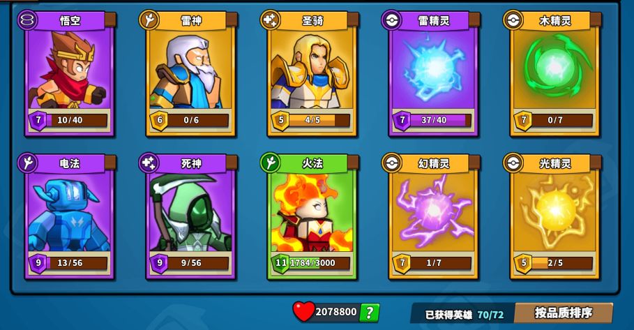 阵容:悟空,雷神,圣骑,电法,死神,火法,雷精灵,木精灵,幻精灵,光精灵