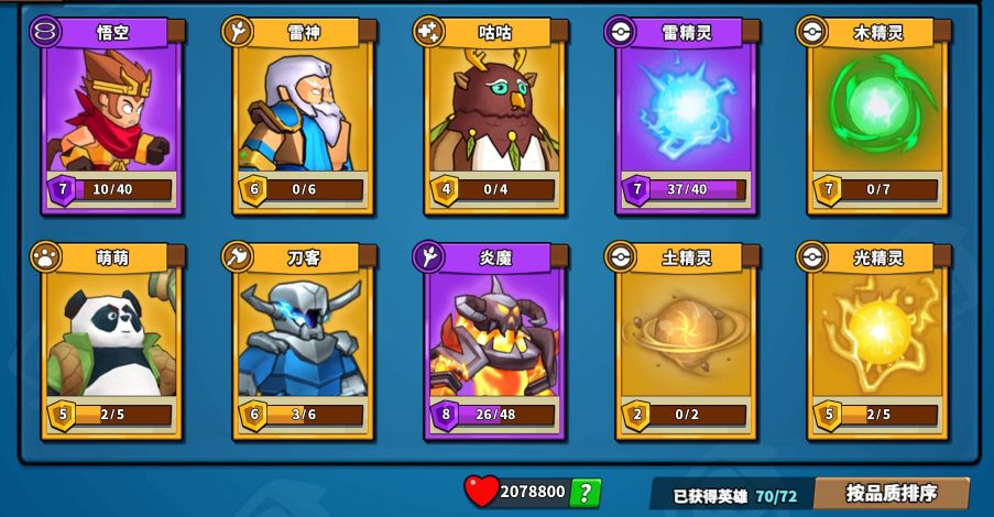 阵容:悟空,雷神,咕咕,萌萌,刀客,炎魔,雷精灵,木精灵,土精灵,光精灵