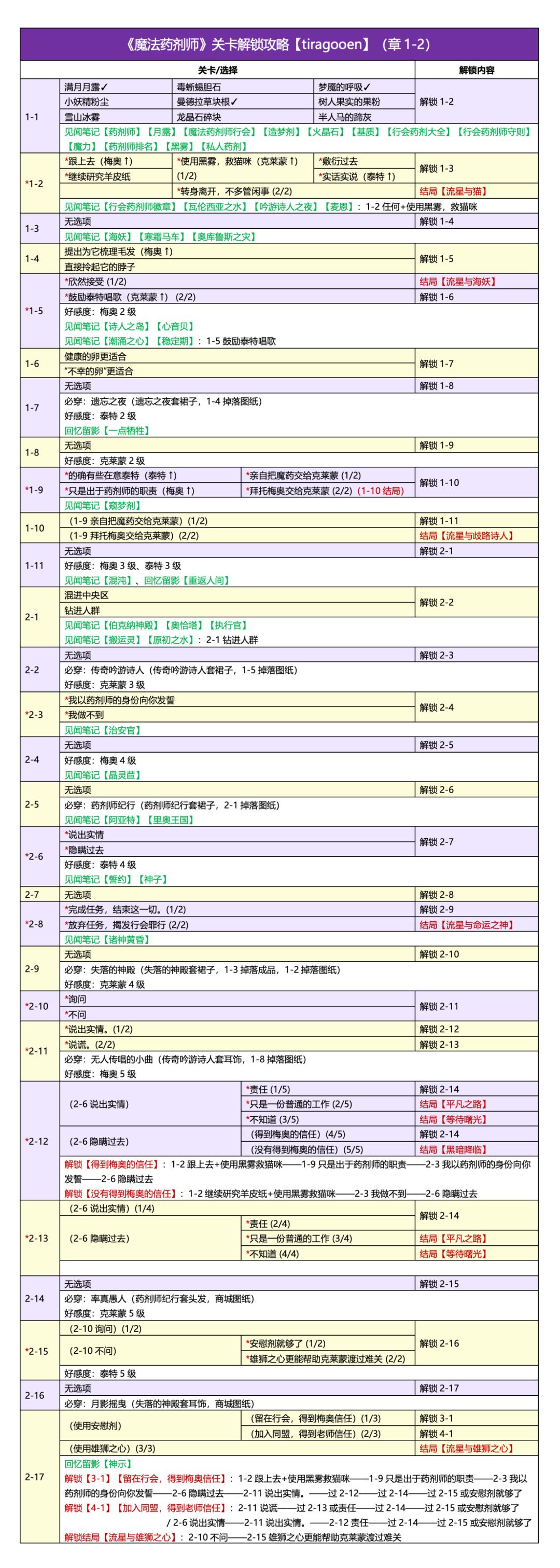 🍀《魔法药剂师》关卡解锁攻略 / 必做 / 见闻 / 留影