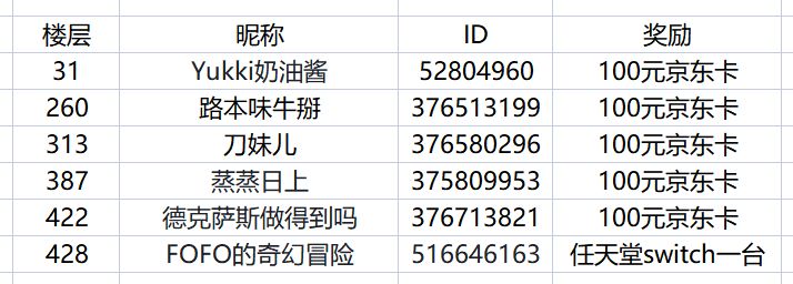 嘿,各位亲爱的勇士,本次抽奖活动已结束~经随机数生成器抽取结果如下:(让阿勇看看这次都有哪些欧皇!