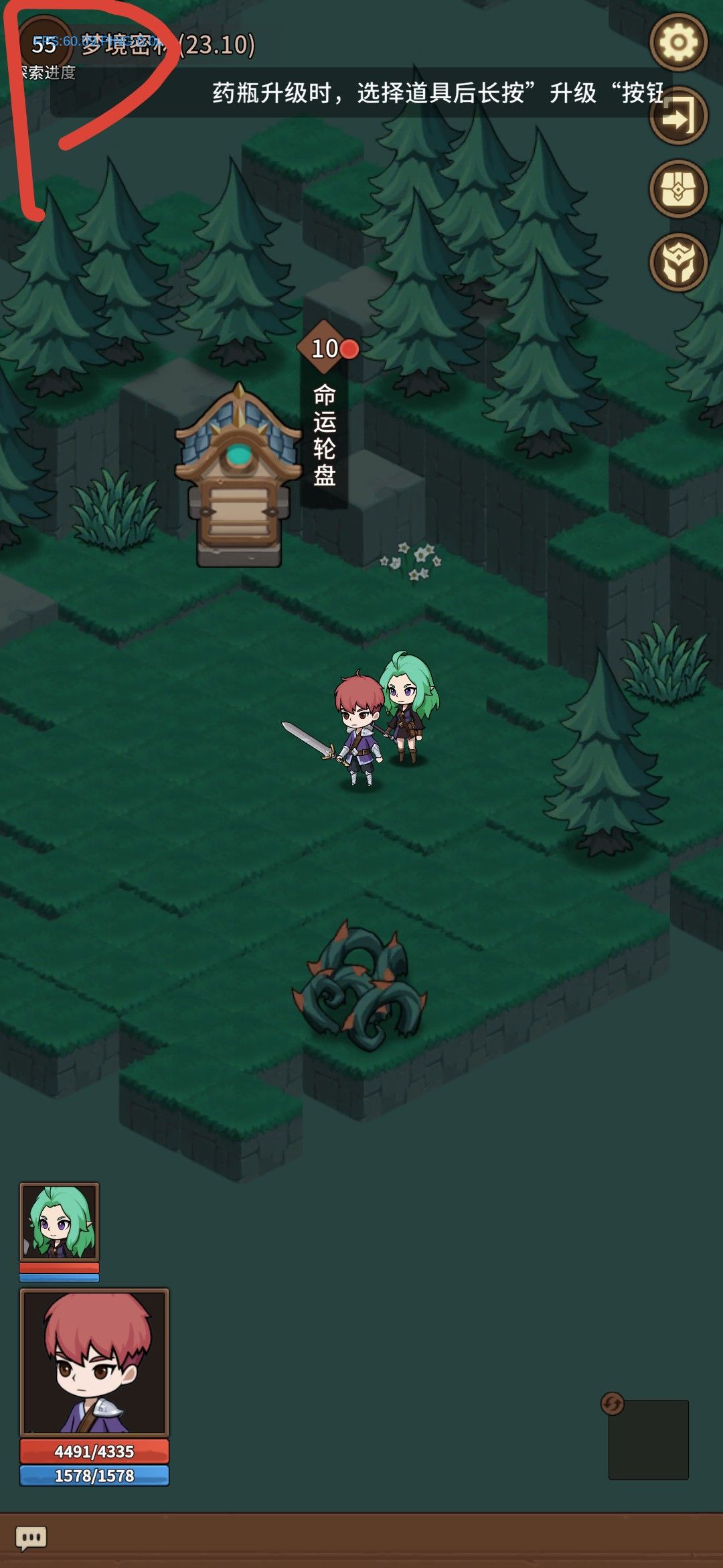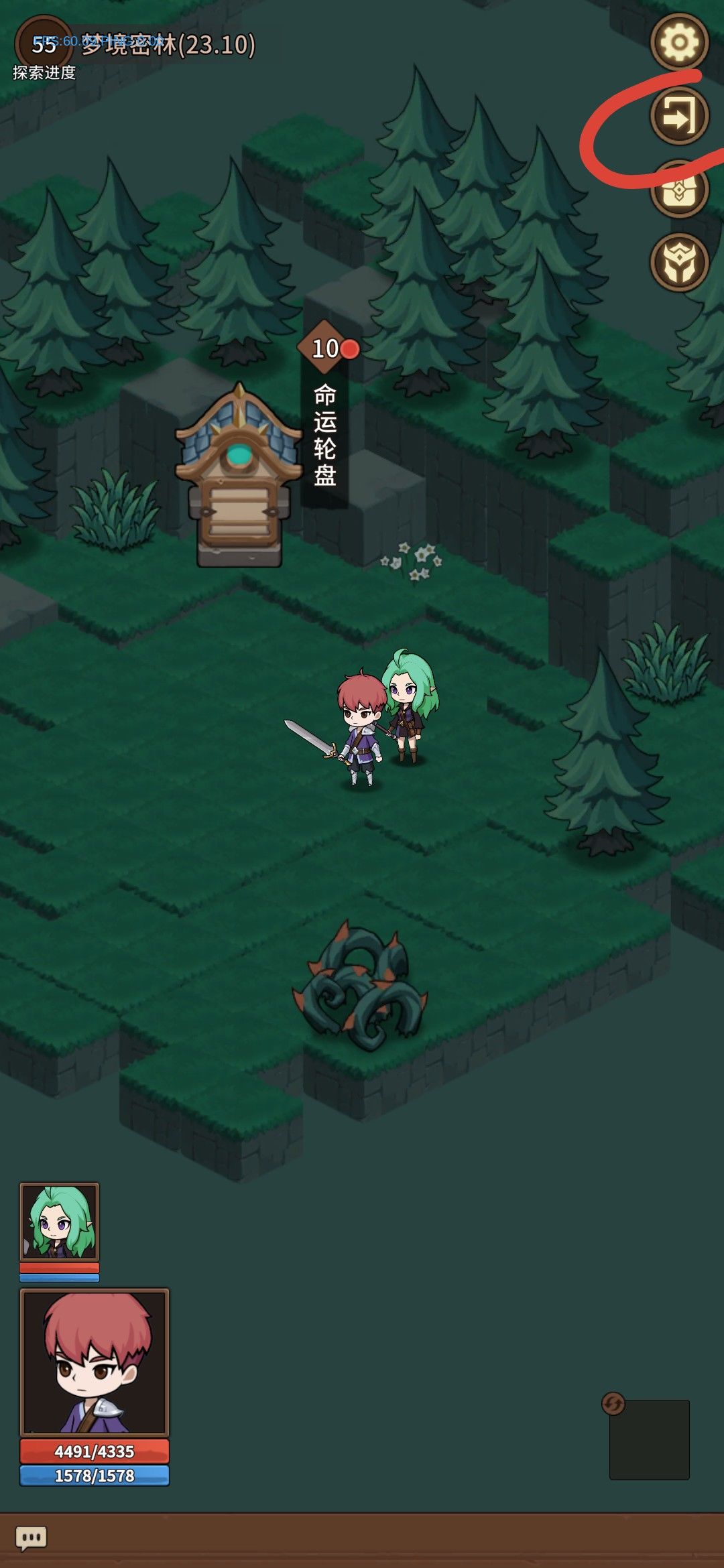 无论是在副本外面还是副本里面,要退出都在右上角第二个图标按钮,副本中途退出和死亡退出是可以带上爆出来的装备和杀怪经验的,所以体力足够可以尽量往高级副本打,更容易变强,经验获取也更多