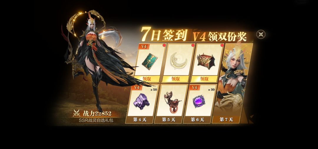 参与7天签到,第2天可获得【SSR光环——轻月漫歌】,第5天可获得【SSR坐骑——玩具木马】,第7天可获得【SSR战灵自选箱】,丰厚好礼诚意满满!