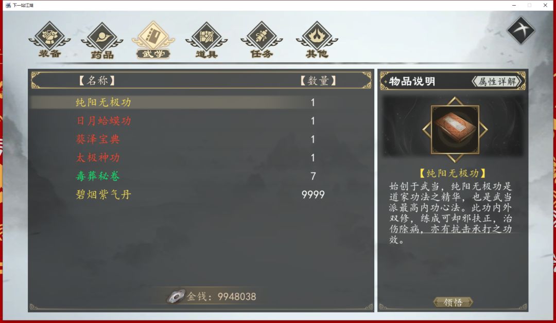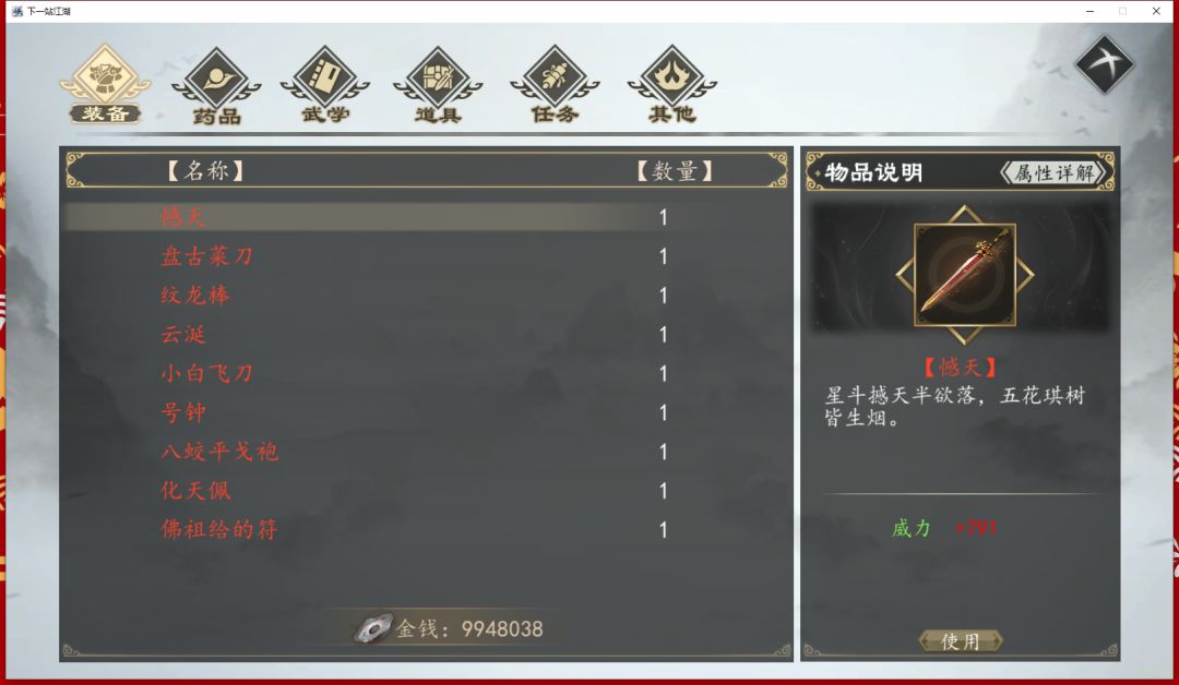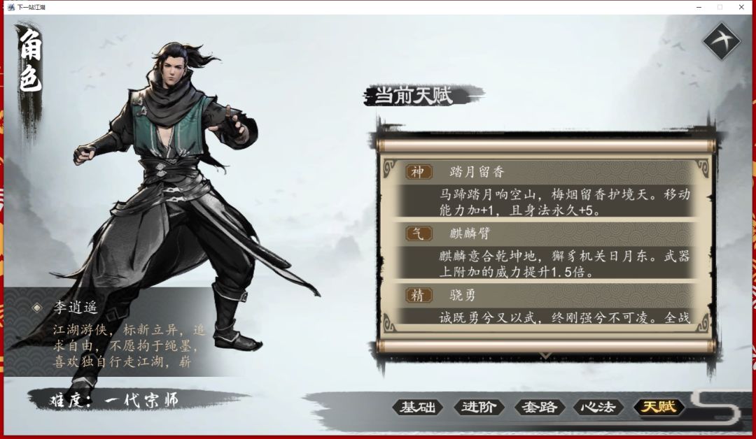 没有爆改,只是在合理范围内给了一套装备和太极精要。DLC党为了满足大家需求,就给了四个初始武学。修为和金钱为了节约大家时间改了。六艺满了懒得刷了,挺蛋疼的。毒的话为了刁延支线没有满,但是给了书。装备就没有改词条了。让大家自己洗,很上头很好玩。天赋选的踏月留香,因为考虑到万道森罗不知道会不会并不能让天赋的减伤抵消。所以这个是最好的。档在最下面,方便大家下载下来打各种线路。