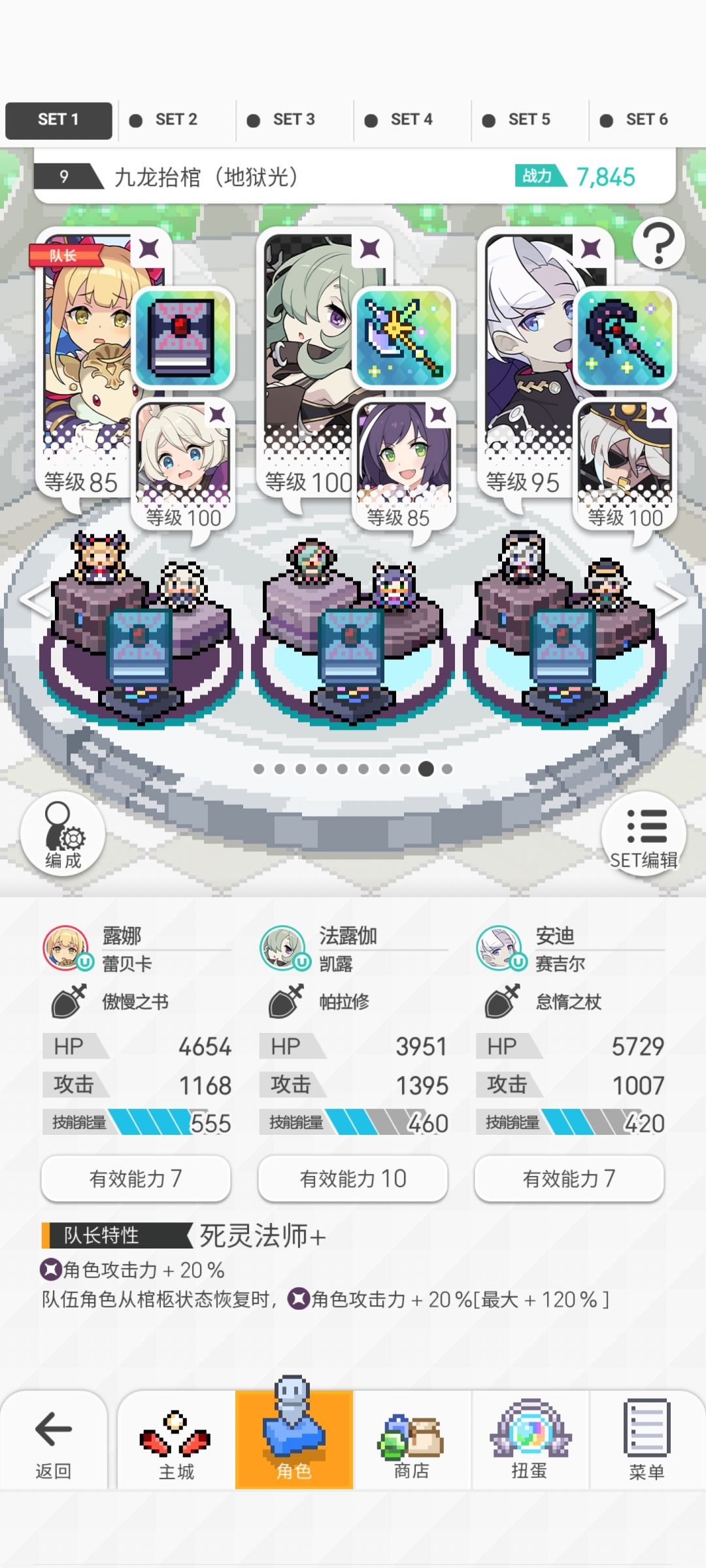 稳定,光f是陪我走完全程的队伍,所以放在压轴☺️回复多,拉f条快,地狱暗本身也比较拉,用这个盘稳鲨,没六版要求