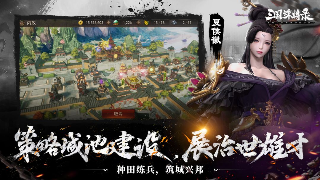 征战黑暗三国战场,不只打打杀杀,所谓兵马未动粮草先行,《三国诛将录》新颖的城建玩法,支持玩家多渠道养成武将。玩家在成为城主后,可大施拳脚进行主城建设。招募、升级武将,建造农田、练兵场实现资源自给自足,战力提升快人一步!创意融入的策略建设玩法,让玩家运筹帷幄,谋而后动。届时还可发起城镇征伐战,讨伐各方诸侯,安定天下。