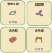 青鱼头套—咕咪看了都说馋,获取后可以得到30颗星,需要从招牌商店里购买、回旋镖—乖狗狗最喜欢的游戏,获取后可以得到20颗星,需要招待斑点狗2次、虎头鞋—父母为了保佑孩子平安长大而制作的,获取后可以得到18颗星,需要从许愿池里获取、虎头帽—保护大耳朵不受寒冷~获取后可以得到18颗星,春节活动期间获取。