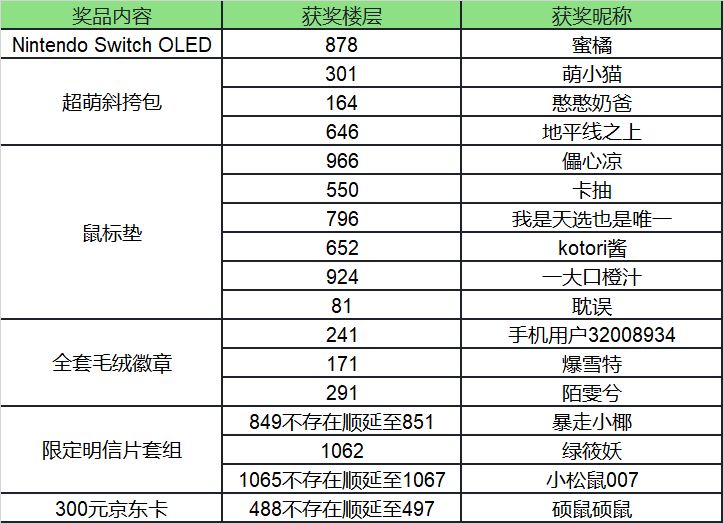 经玩家举报并于TapTap官方核实,本次活动的SWITCH得奖者的账号存在刷数据的问题,故取消获奖资格,现重新抽取1位猫家长,恭喜950楼的猫家长获奖!