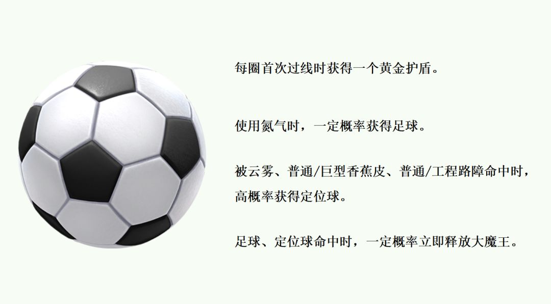 被云雾、普通/巨型香蕉皮、普通/工程路障命中时,高概率获得定位球。