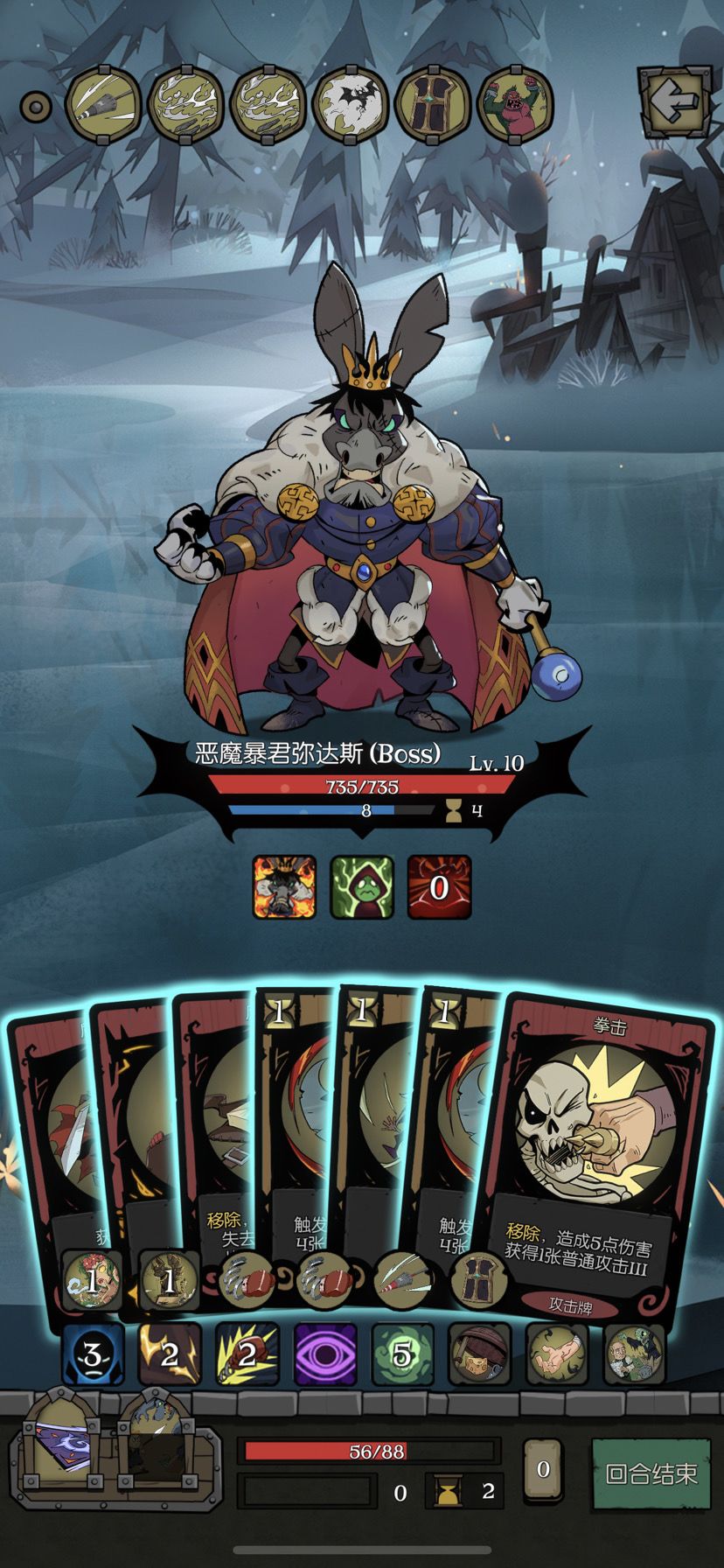 核心卡牌【旋风斧】、【拳击】【应急干粮】【盾牌格挡】,其余可以看情况任意补一张攻击牌,追求伤害可以补一张闪电,注意攻击牌最好不要超过四张。